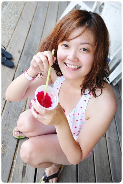 就在這時候~一個海浪打上來嚇的我尖叫